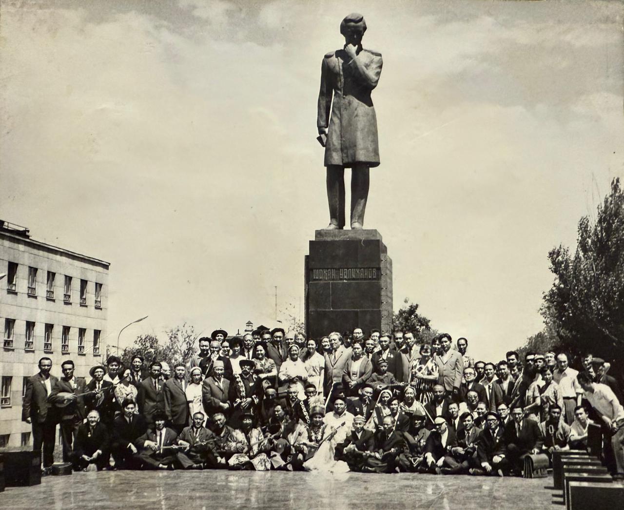 (Жамбылдың 125 жылдығына орай республикалық айтыста жиналған ақындар арасында)
