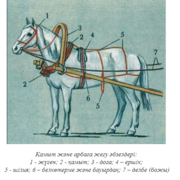 – Балам, үйреніп ал, бірінші атқа қамытты салады. Сосын шоқтығынан төменірек ершікті салып, тартпасын тартады. Міне былай, – деген Темірғалы қарт аттың мойнына қамытты кигізіп, арқасына ершікті салды.