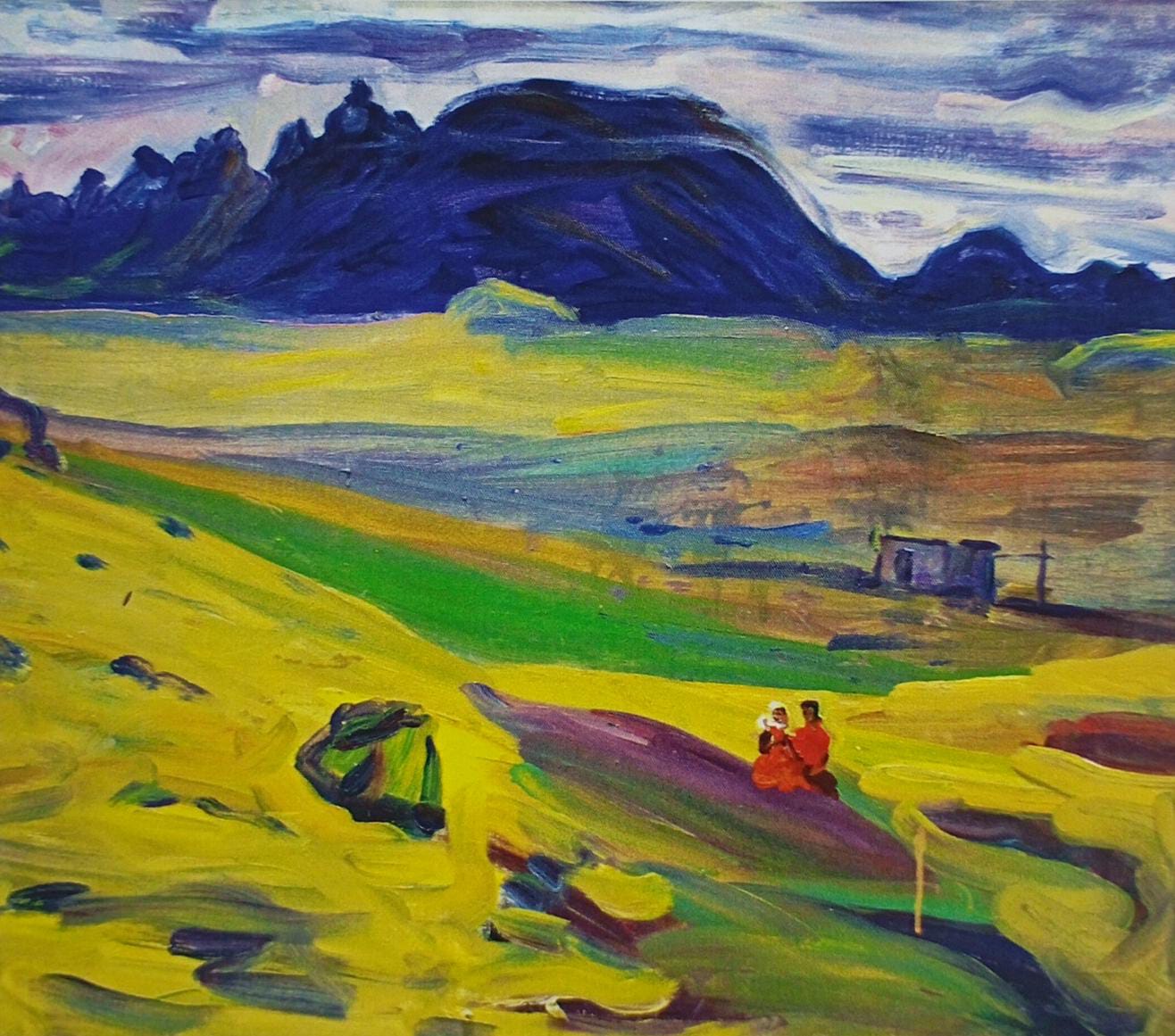 Туған даланың тартымдылығын, олармен үзілмейтін жақындық туралы сезімін суретші барлық тақырыптарында жалғастырып өңдейді. Суретші шетелдегі мемлекеттерге шықса да, Отанының түкпір-түкпіріне саяхат жасаса да, оның шығармашылығы жаңа түстермен, ырғақтармен, реңдермен байытылады. 1968 жылы Венгрияға сапар Сахиге пейзаждардың мүлдем басқа сипаттамаларын сезінуге мүмкіндік берді. Біраз уақыттан кейін Қарқара жайлауына армениялық суретшілерге жолсерік болып жүріп, кезінде суретші өзінің туған өлкесінің түрлі-түсті байлығын жаңаша түрде сезінеді. Көңіл-күй мен түс өзгеріп, суретші алғашқы шығармаларына тән тұйық үйлесімділікті іздемей, безендіріліп әшекейленуге толы сарын мен реңдер пайда болады.