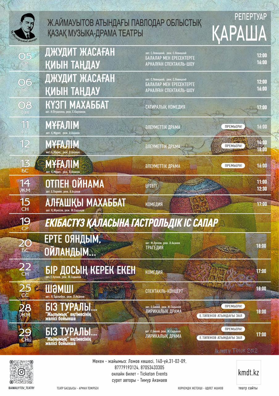 Қаперіңізге! Ж.Аймауытов театрының қараша айындағы репертуары aIQara 03/11/2025 Continue Reading Алдыңғы жазба Алдыңғы жазба: Мейіржанның мерейі үстемКелесі жазба Келесі жазба: Мизан ЖҰМӘЛІ: «Дауылпаз» (поэмадан үзінді) Добавить комментарий Отменить ответДля отправки комментария вам необходимо авторизоваться. Related News «Жырларына әуен қонған ақындар» кеші өтеді «Жырларына әуен қонған ақындар» кеші өтеді 03/11/2025 Мизан ЖҰМӘЛІ: «Дауылпаз» (поэмадан үзінді) Мизан ЖҰМӘЛІ: «Дауылпаз» (поэмадан үзінді) 03/11/2025