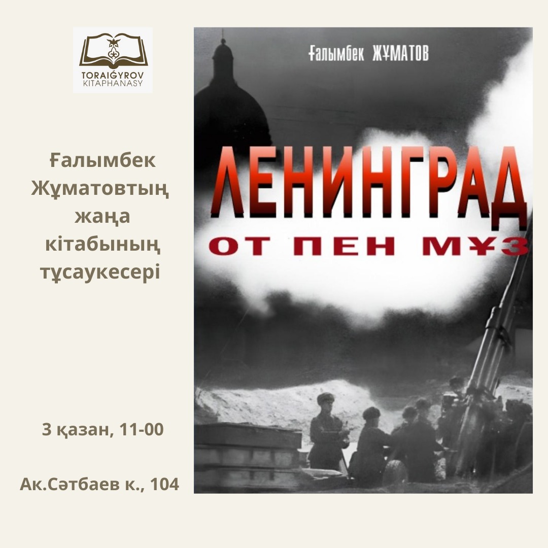 3 қазан күні Павлодардағы С. Торайғыров атындағы облыстық кітапханада жазушы Ғалымбек Жұматовтың «Ленинград: от пен мұз» атты романының тұсаукесері өтеді.
