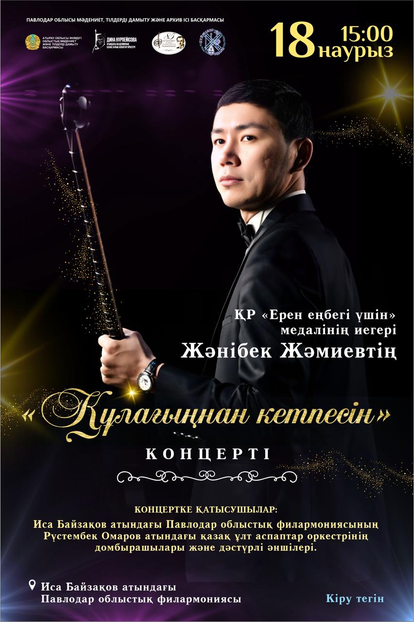 Иса Байзақов атындағы Павлодар облыстық филармониясында талантты музыкант Жәнібек Жәмиевтің, сондай-ақ Рүстембек Омаров атындағы қазақ халық аспаптар оркестрінің домбырашылары мен дәстүрлі ән салу солистерінің қатысуымен «Құлағыңнан кетпесін» атты ұлттық өнер кеші өтеді.