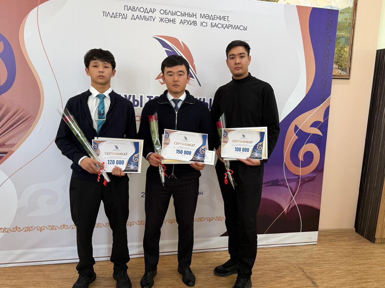 Нәтижесінде жүлделі І орын – Мақсұт Нариман Жамбылұлы, Ертіс ауданы Қараағаш орта мектебінің қазақ тілі мен әдебиеті пәні мұғалімі; ІІ орын – Қайрат Алдияр Қуатұлы, Ы. Алтынсарин атындағы облыстық қазақ гимназия-интернатының оқушысы; ІІІ орын – Абылқас Жамбыл Жанбекұлы, Ә. Марғұлан атындағы Павлодар педагогикалық университетінің 1-курс студенті иеленді.